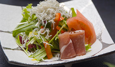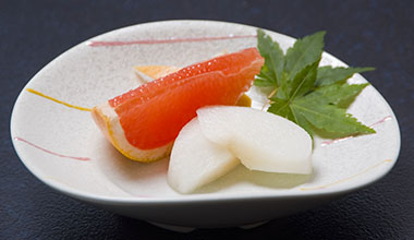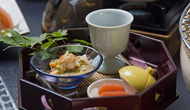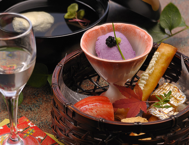 ご夕食は旬の素材と地魚を使ったくずし懐石料理をお楽しみ下さい。