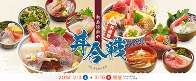 獲れたての海の幸を堪能できるグルメイベント「丼合戦」は、初島の漁師が営む食堂を中心とした島内の17店舗が、獲れたての地魚やイカ、エビ、伊豆の名産野菜アシタバなど、旬の食材をふんだんに使った思い思いの「オリジナルの丼ぶり」をふるまう、島を挙げての冬の恒例グルメイベントです。